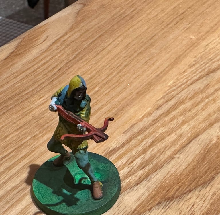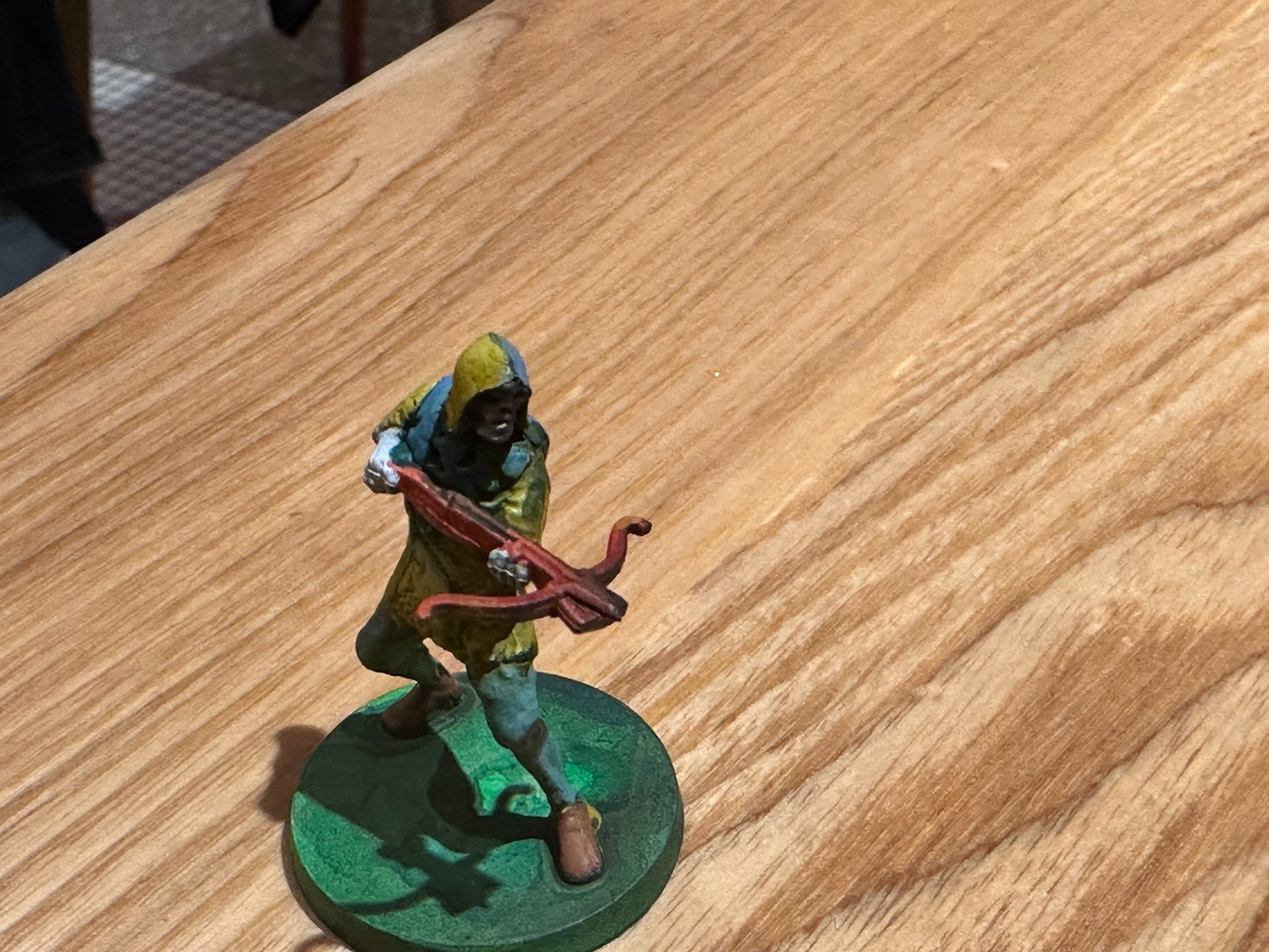 This was my fist attempt to paint a zombie crossbowman. Some of the colors mixed together but actually created a dirty look that is somewhat thematic.